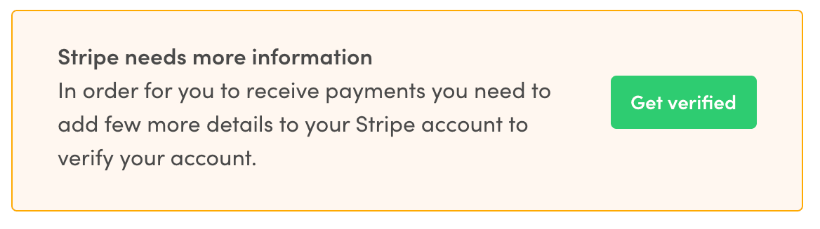 • If there is still something missing from the Stripe Account, the status box is in verificationNeeded mode